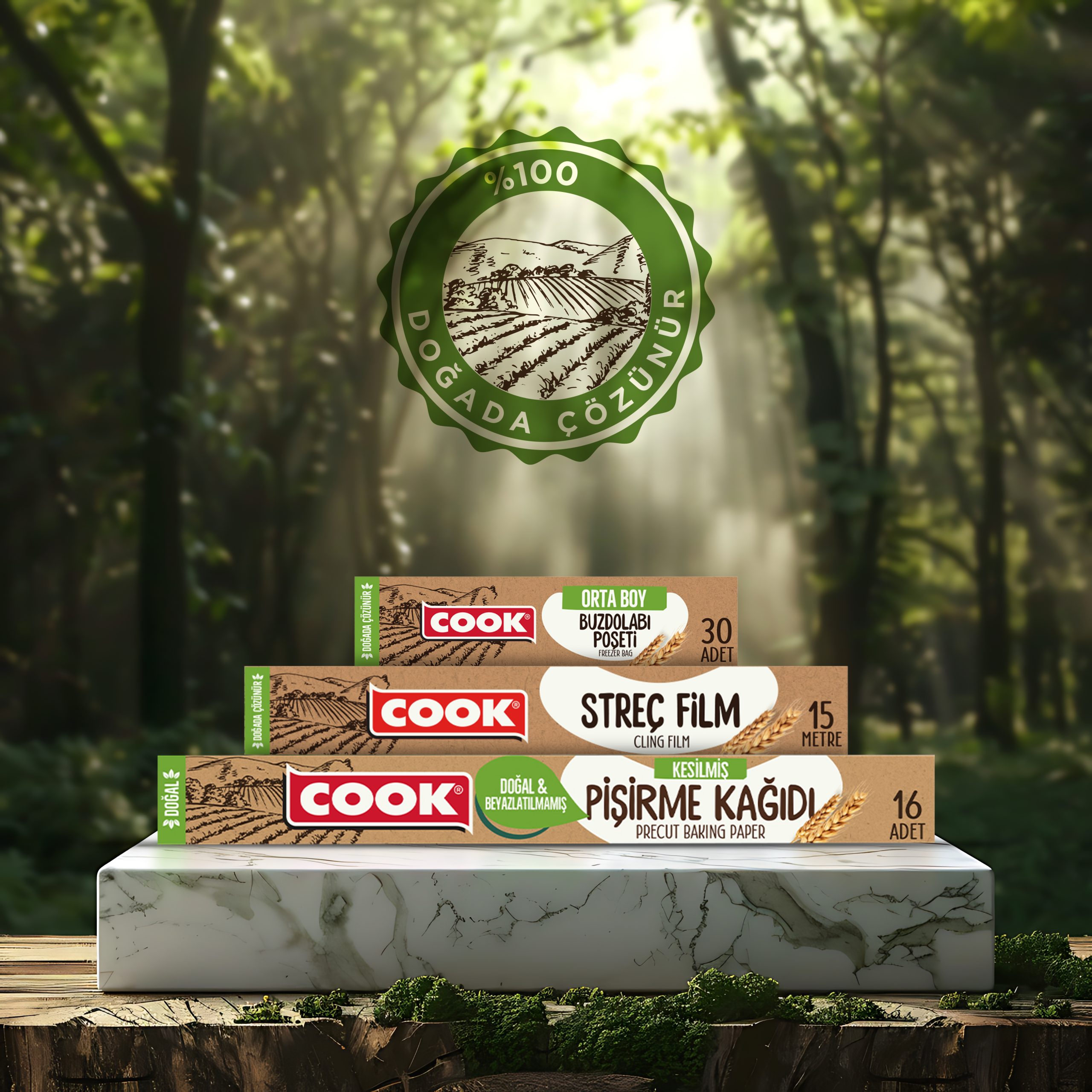 Cook olarak, tüketicilerimizin günlük yaşamlarında onları destekleyecek çözüm önerileri sunarak, mutfakta daha keyifli vakit geçirmelerini ve bunun sonucunda kendilerine, ailelerine, sevdiklerine, kısacası yaşamaya daha çok zaman ayırmalarını sağlamak istiyoruz. Bu çözümleri sunarak daha mutlu bir yaşam vaad ederken, esas önemli olan “önceliğimiz doğa” prensibimizi hep ön planda tutuyor; bugün ve gelecekte ise sürdürülebilir çözümler sunmayı ve geleceğe dair adımlarımızı bu yönde atmayı bir sorumluluk ve misyonumuzun ayrılmaz bir parçası olarak görüyoruz. Önümüzdeki yıllarda sürdürülebilir ve doğa dostu ürünlere talebin ve bu konudaki hassasiyetin daha da artacağını öngörerek çıktığımız yolda uzun süren ar-ge çalışmaları sonucunda Türkiye’de ilk olan gübrelenebilir doğal çöp torbasını geliştirdik. %100 nişastadan üretilen bu çöp torbaları organik atıklarınızı doğru şekilde ayrıştırmanıza yardımcı olduktan sonra toprakla birleşerek tamamen organik gübreye dönüşür. Tıpkı bir elma veya domates kabuğu gibi. Üstelik performans açısından diğer çöp torbalarından hiçbir farkı yok, diğerleri kadar güçlü!